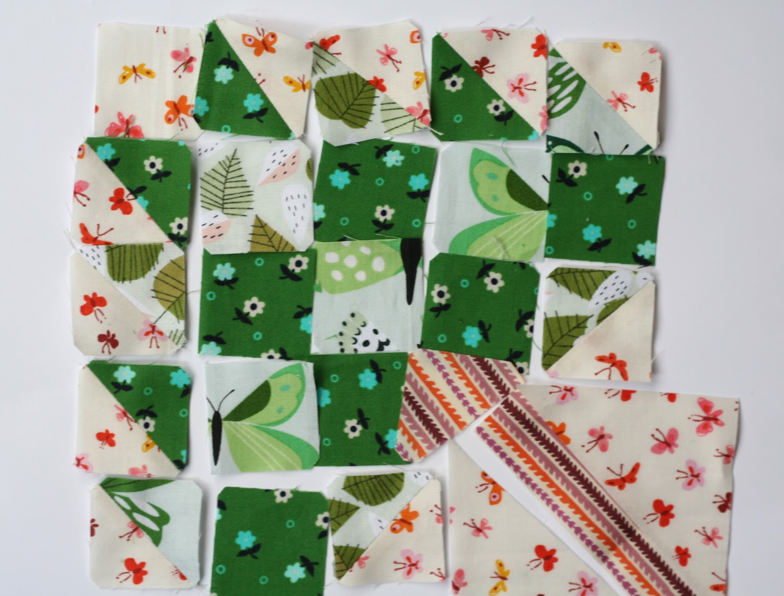 Sew the trunk fabric triangle on to the corner to complete this section.