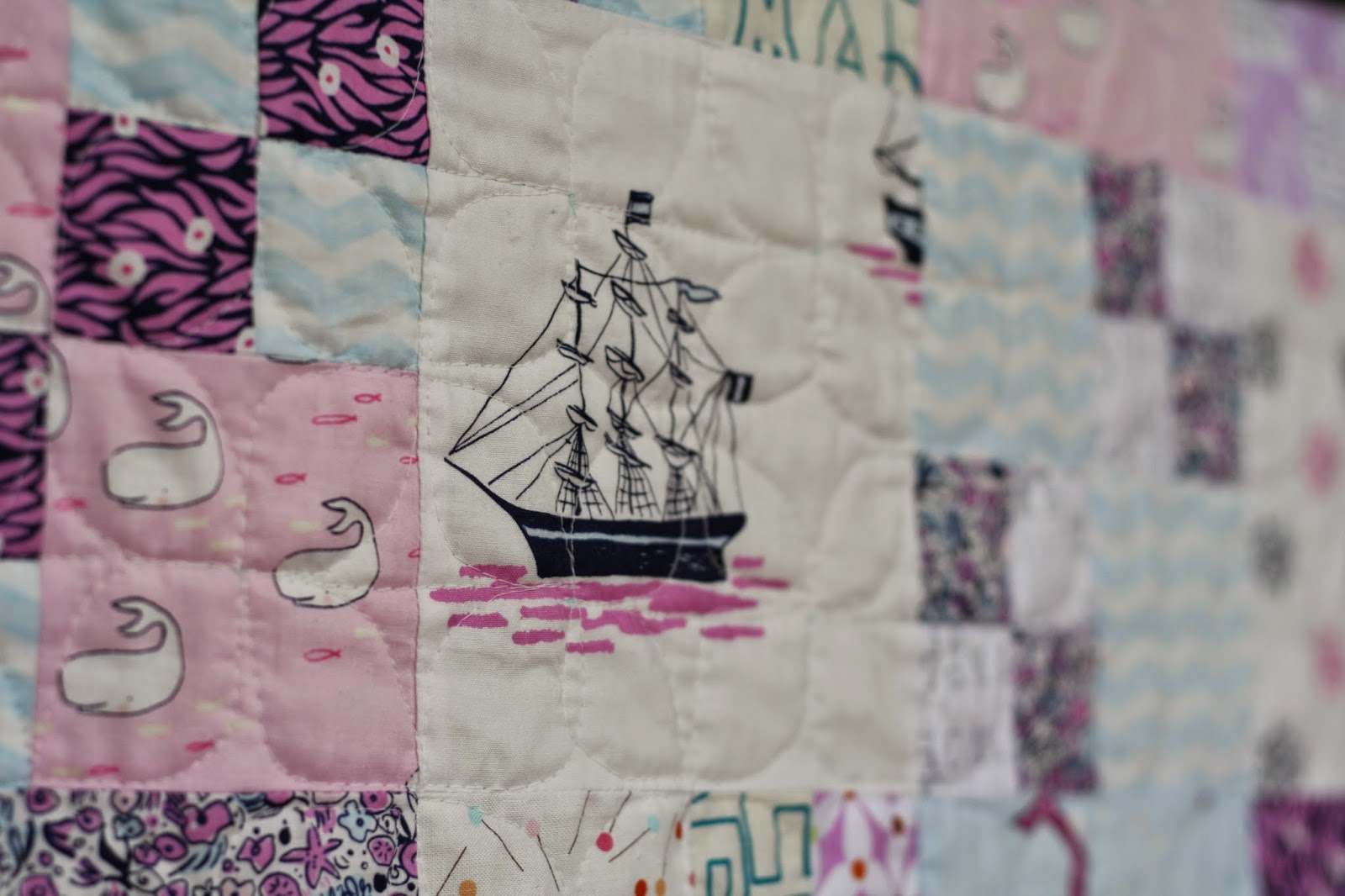 This afternoon I finished quilting my daughter’s Out to Sea Penny Patch quilt. I used Rachel at Stitched in Color’s Dogwood quilting tutorial. I love the softness that all those gentle curves add to the quilt. I’ll be looking for excuses to use this quilting pattern again!