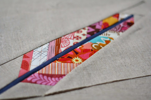 An Anna Maria Horner feather quilt has been on my bucket list for the last few years. Maybe next year! In the meantime I thought a reduced feather would look good on the side of a Sew Together Bag. I didn’t put a lot of thought into the whole process, I used the STB that Andrea had made me as a rough guide for size, I could see that the 50% feather should fit, especially if I set it on an angle. I made up the sizes for the setting pieces as I went, not an ideal way to piece but fun and fast! Then I thought I had better get back to that WIP list.