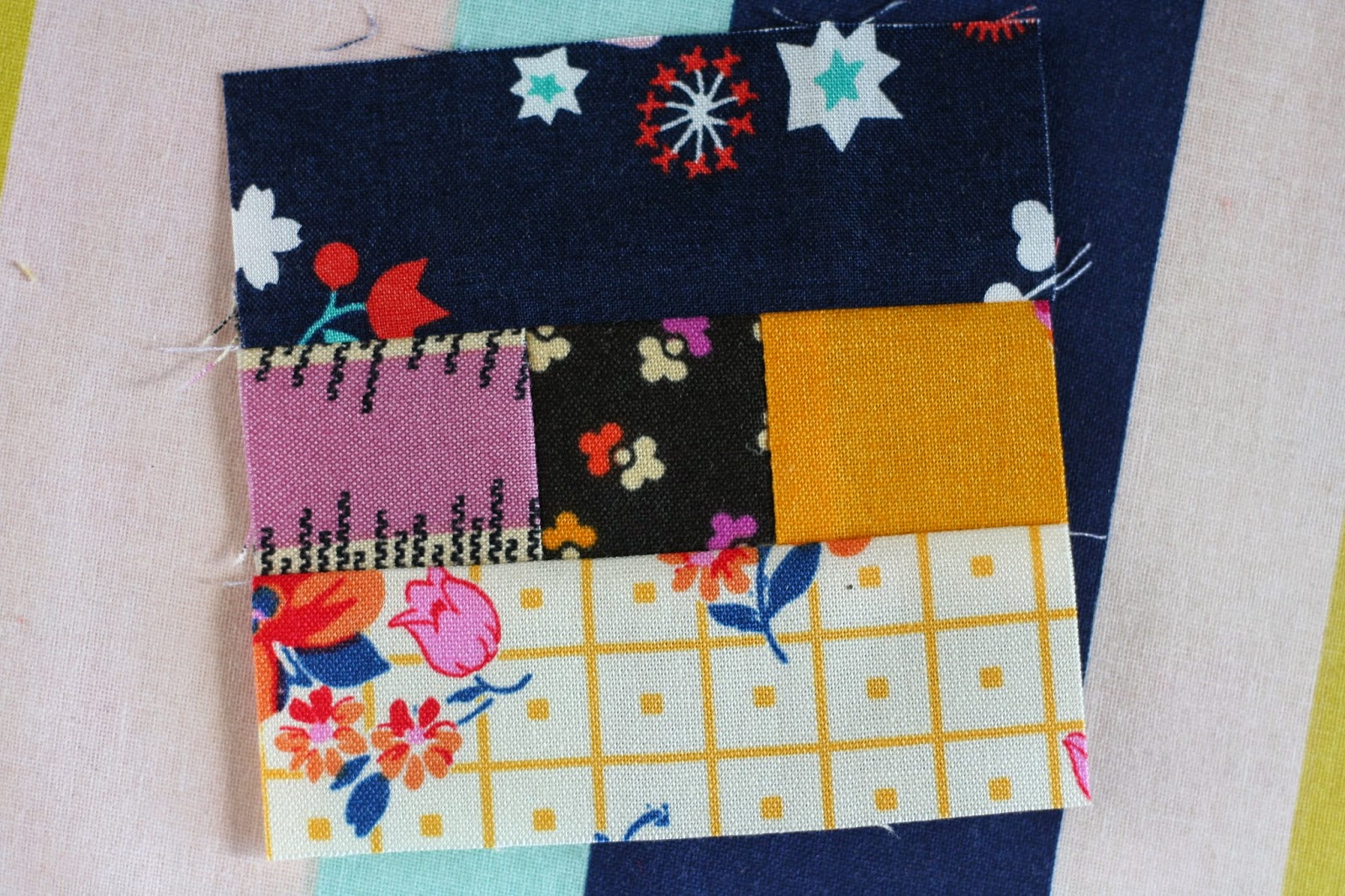 Looks amazing! That block does something very neat to the striped fabrics.