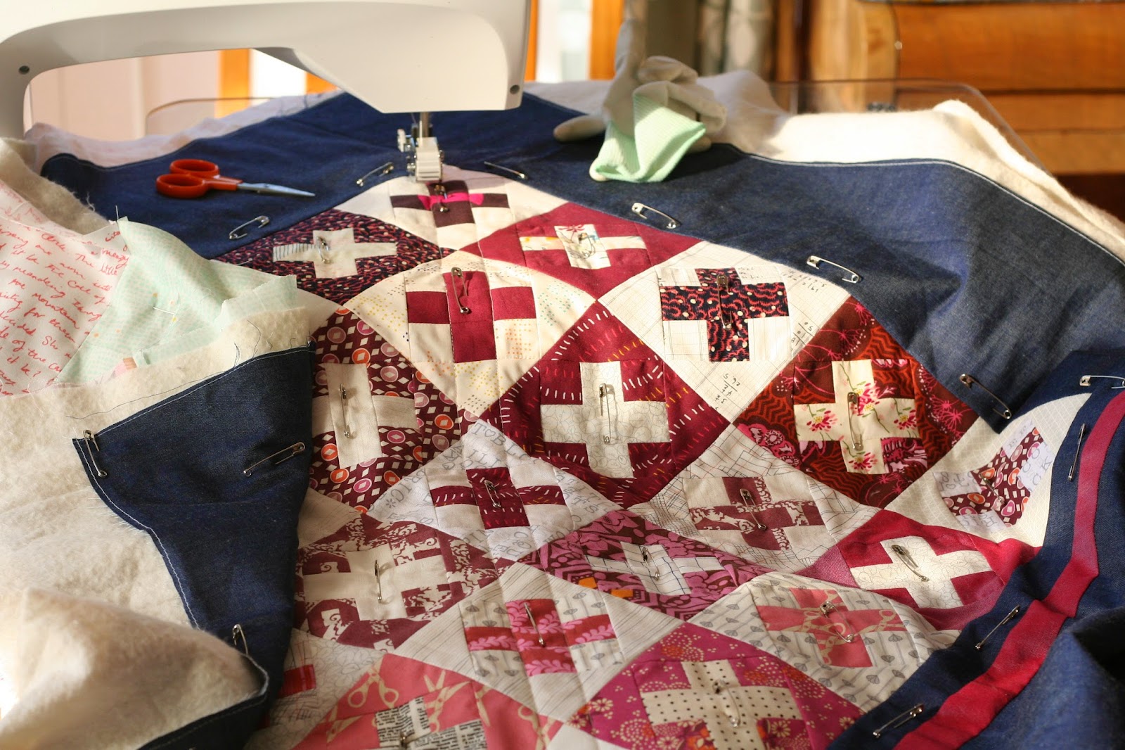 Your Marsala quilt is stunning Rachel – the kisses blocks are just lovely with the denim chambray!