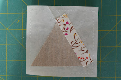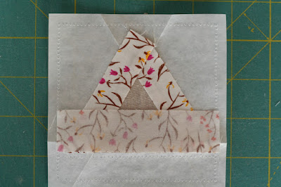 I love that you can iron the freezer paper to hold. I just use my printer paper and pin it in the center but for smaller stuff I would prefer no pins. I always do the fold thing. When I first saw the idea of paper piecing I didn't want to print and cut out several templates so I just folded it out of the way as I went. Very nice tutorial.