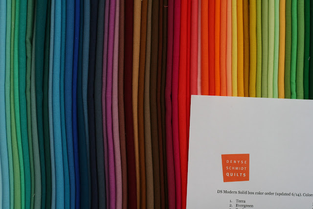 Yesterday I listened to Carolyn Friedlander’s Hand Work is Fun Webinar (which I loved!). It got me thinking about the applique quilts in Denyse Schmidt Modern Quilts Traditional Inspiration and how, given how slow I’m likely to be, I really should make a start on them. So today I spent some time going through the fabric requirements for what looks to be the easiest of the five applique quilts, Floral Applique. I’m hoping that by starting with the easiest, I’ll pick up the skills to tackle the harder ones (particularly the Hawaiian quilt, eek!). Thanks to the needle-turn applique class I took with Carolyn Friedlander at Quiltcon, I already have all the notions I need and most importantly, the confidence to make a start.