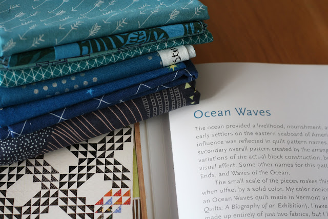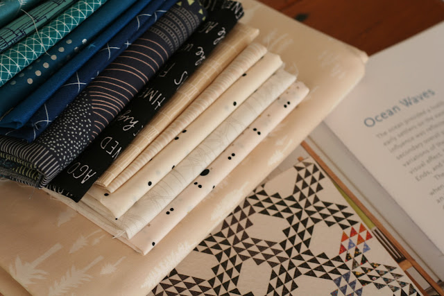 You've made fabulous fabric choices for the ocean waves quilt — do you mind listing the fabric names that you've shown in your photos? And are they FQ's or half yard cuts? I Love Denyse Schmidts book too — some of my favorite quilts ever are in that book. Thank you!!