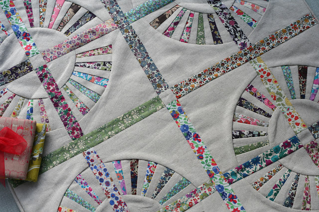 Rachael made me the most amazing Liberty pillow using the Wheel of Fortune pattern from Jen Kingwell’s new book Quilt Lovely. The background fabric is a beautiful linen/cotton blend.