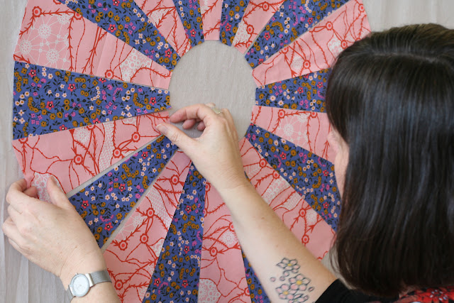 Before launching into making our own wedge blocks, Kathy asked us to organise our fabrics in to three piles; warm, cool and neutral and then to organise each pile by value. This simple exercise helped us think about contrast, and helped us get off to a good start choosing fabric combinations for our blocks. The rest of the day was spent pairing fabrics, cutting and sewing. I wanted to make the most of the day so worked hard and only took a short break to scoff some lunch and snap a few photos (hence the lack of photos to show you!).