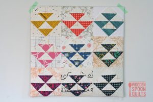 I'd love to know the design/how you made it – the HSTs set on point are fabulous! The pattern jumped out at me right away!